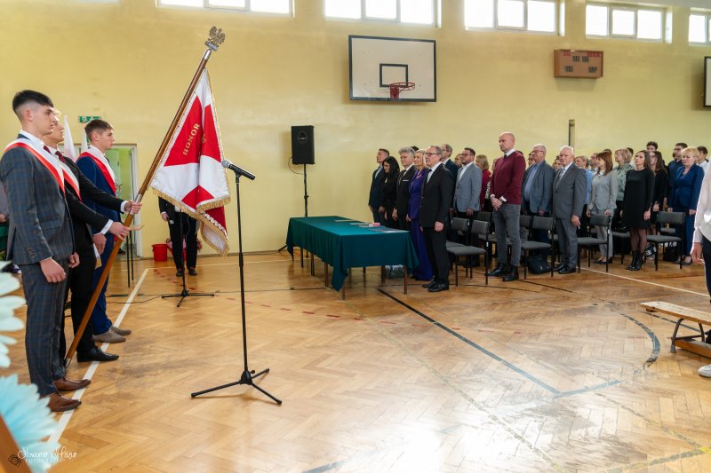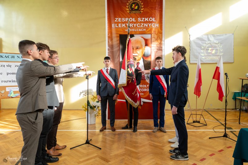Po krótkich przemówieniach Dyrektora i przedstawicieli miasta Kielce nastąpiło wprowadzenie sztandaru szkoły co było sygnałem do odśpiewania hymnu Narodowego i hymnu Szkoły. Obecni na spotkaniu uczniowie pierwszych klas złożyli ślubowanie na sztandar ZSE.