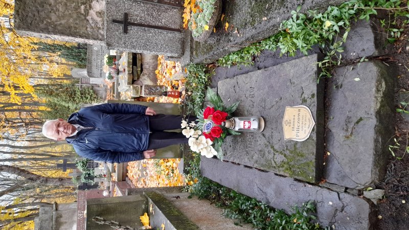 Wszystkich Świętych to dzień, w którym tradycyjnie odwiedzamy groby bliskich zmarłych. Zwyczaje związane z obchodami tego święta obejmują modlitwy, zapalanie zniczy na grobach, czy dekorowanie grobowców kwiatami. Patronem Oddziału Kieleckiego SEP jest inż. Tomasz Ruśkiewicz. W roku 2026 będziemy obchodzić 100 rocznicę śmierci Inspiratora i Współzałożyciela Stowarzyszenia Elektrotechników Polskich. Aby godnie uczcić jego pamięć podjęta została przez nasz Oddział Kielecki SEP inicjatywa odbudowy grobu znajdującego się na Cmentarzu Powązkowskim w Warszawie, kw. 211-3-4. Inicjatorami tak dużego przedsięwzięcia są: Prezes Oddziału Kazimierz Ginał oraz V-ce Prezes ds. Organizacyjnych Andrzej Bysiak. Cmentarz jest objęty ścisłą ochroną konserwatorską i wszystkie decyzje związane z pracami modernizacyjnymi wymagają dodatkowych uzgodnień i ustaleń z władzami cmentarza. Koszty też odgrywają poważną rolę, udział sponsorów wspomoże realizację wzniosłego celu a składki członków stowarzyszenia uzupełnią koszty realizacji odbudowy pomnika. Wymaga to podjęcie szeregu działań logistycznych i na Zarządzie Oddziału Kieleckiego SEP możemy polegać. Uporządkowanie obecnego stanu grobowca, zapalenie zniczy i udekorowanie wiązanką kwiatów to też działalność obecnych w tym roku na cmentarzu naszych przedstawicieli w osobach Prezesa Kazimierza Ginała i V-ce Prezesa Andrzeja Bysiaka. Koledzy wiązankę kwiatów również złożyli na cmentarzu Północnym w Warszawie, gdzie spoczywa prawnuczka naszego patrona Pani Joanna Cortes, artystka Opery Warszawskiej, z którą nasz Oddział miał bardzo dobre i serdeczne kontakty. Coroczne wizyty w Dniu Święta Zmarłych na Powązkach stały się tradycją i naszym obowiązkiem.